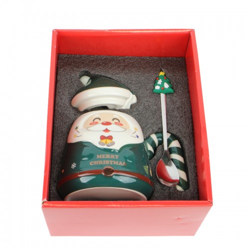 Рождественская чашка "Merry Christmass" Санта JJX001 кружка в форме Санты с ложечкой в подарочной упаковке Green