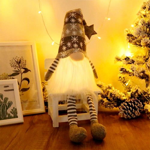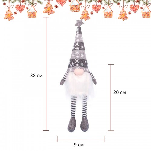 Новогодний Гном N2 для праздничного декора с Led подсветкой 20 см Gray