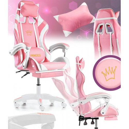 Крісло геймерське G846 рожеве з підставкою для ніг