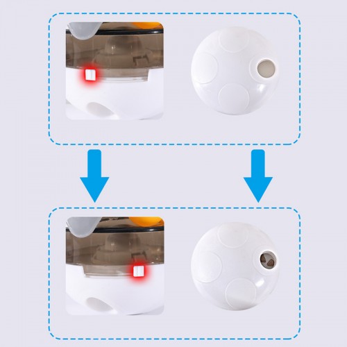 Использование Аккуратно поверните крышку и положите в нее корм; Поверните переключатель, чтобы открыть и закрыть отверстие; Кот трясет игрушку- высыпается корм.