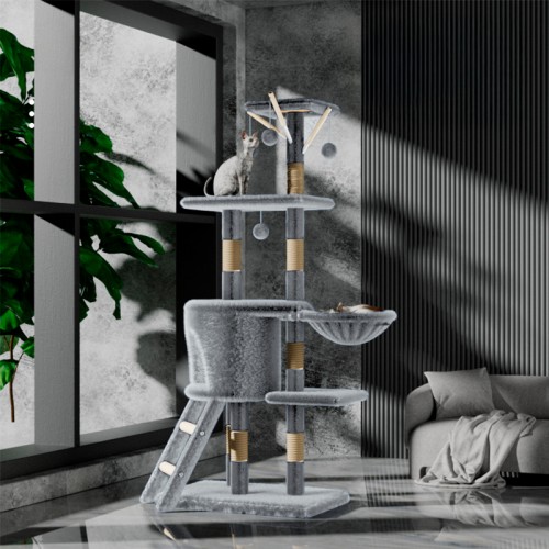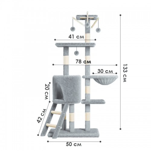 Домик когтеточка для кошек TM100 царапка с игровым комплексом 133 см Gray