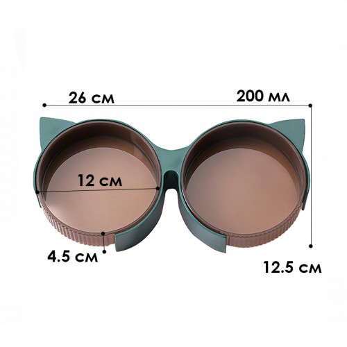 Миска Taotaopets 198807 для котов двойная с ушками Green
