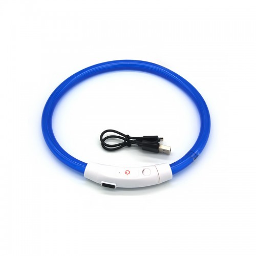 Светодиодный LED ошейник L-18 USB светящийся водоотталкивающий для собак и котов Blue S