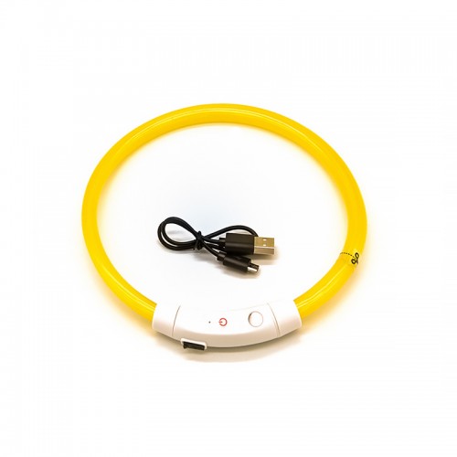 Светодиодный LED ошейник L-18 USB светящийся водоотталкивающий для собак и котов Yellow S
