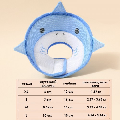 Дизайн: Воротник имеет оригинальную форму акулы, которая не только выполняет защитную функцию, но и добавляет веселых ноток во внешний вид вашего любимца. Яркий цвет делает воротник броским и привлекательным.