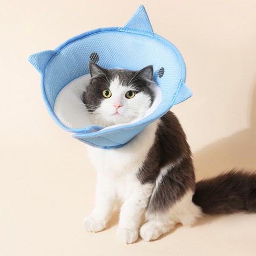 Мягкий воротник-подушка для кошек DT-613 послеоперационный защитный от вылизывания M Blue Shark