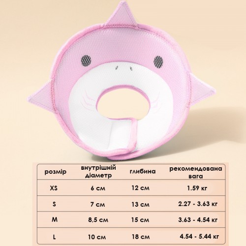 Мягкий воротник-подушка для кошек DT-613 послеоперационный защитный от вылизывания S Pink Shark